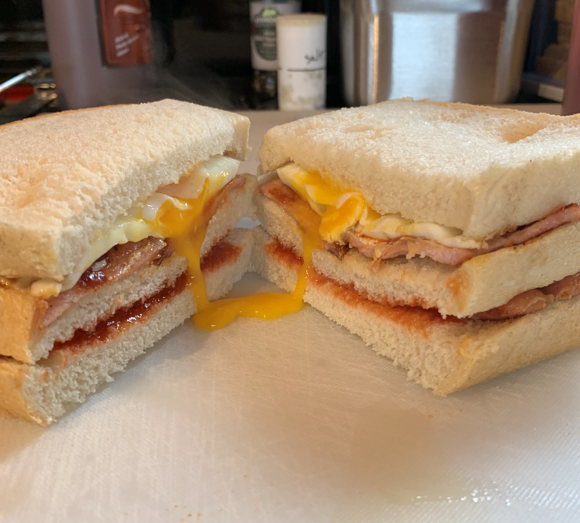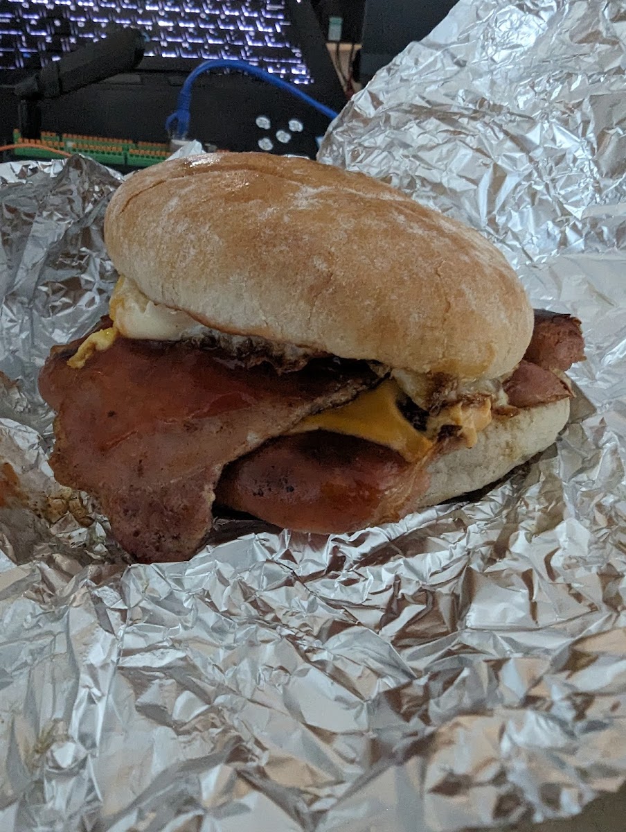 absolutely textbook bacon egg sausage sandwich. Great food, great price, great service.
